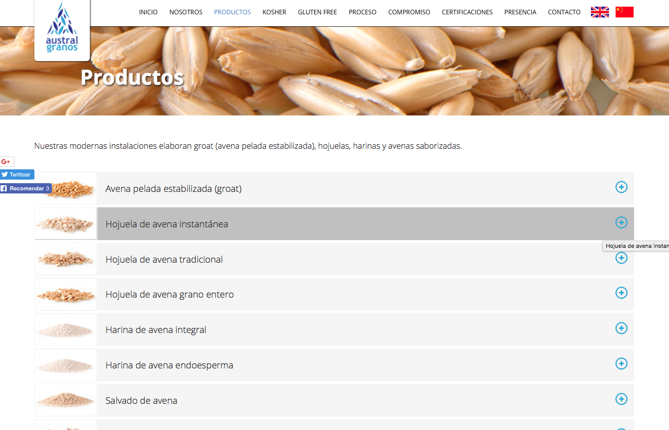 En empresas Austral Granos, fundada en 2007, nuestro principal objetivo es abastecer al mercado local con la mejor avena de Chile y al exterior en países como El Salvador, Costa Rica, Venezuela, México, Guatemala, Colombia, Ecuador y otros países. Continua leyendo “Austral Granos comercializa avena gluten-free”